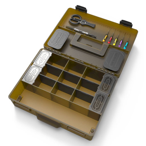 Une station de pêche complète XL ! Votre compagnon idéal au bord de l'eau, pour ranger tous vos bas de ligne, outils et montages dans une boîte à pêche ultra-résistante. Les compartiments BLOX sont dimensionnés avec soin pour accueillir les indispensables, comme les bobines de fil, les paquets d'hameçons et les accessoires. Vos outils d'amorçage, votre dégorgeoir et vos ciseaux se rangent facilement, tandis que le compartiment principal est modulable grâce à des séparateurs. Le couvercle abrite également deux compartiments BLOX peu profonds pour vos bas de ligne pré-montés, les protégeant ainsi des intempéries. Elle est équipée d'une poignée de transport intégrée et résistante, d'une poignée latérale, de clips de sécurité et d'un joint. Un gabarit de longueur pour le montage des bas de ligne est également inclus. Dimensions de la boîte : L 36 x P 26 x H 11,5 cm.