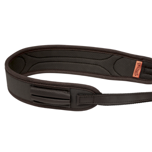 Les attaches pivotantes protégées contre la corrosion permettent une fixation rapide et sécurisée par simple clic, avec un démontage instantané par pression sur un bouton. La bretelle intègre des passants pour deux cartouches de rechange, toujours accessibles. Elle conserve une élasticité suffisante pour accompagner les déplacements les plus exigeants, tout en assurant un port confortable. Les boucles en polymère à réduction de bruit évitent les claquements et protègentl'arme des rayures.