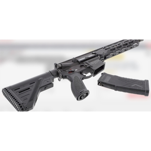 Ergonomie : tube de crosse MIL-Spec et poignée pistolet AR pour une prise en main familière; commandes ambidextres.