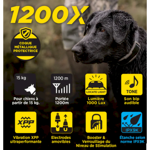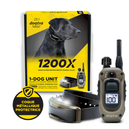 Le Dogtra 1200X est conçu pour les dresseurs et propriétaires de chiens qui exigent une grande performance et fiabilité. Avec une portée maximale de 1200 mètres, une fonction BOOSTER pour un rappel rapide et efficace, et la vibration ultra-performante XPP pour capter immédiatement l’attention, vous gardez le contrôle même dans les moments difficiles. La coque métallique de protection offre une grande résistance. La lumière LED assure une visibilité optimale de votre chien en cas de faible luminosité. Que ce soit lors du dressage ou lors d'activités en pleine nature, le 1200X est votre allié pour une performance fiable et sans compromis. Un équipement conçu pour durer!