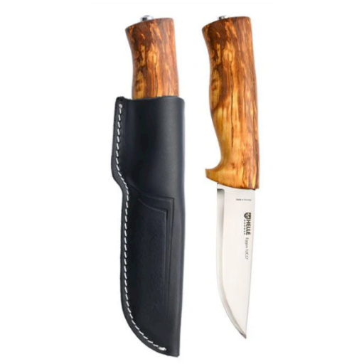 Couteau droit HELLE eggen manche en bouleau lame 101mm + étui en cuir