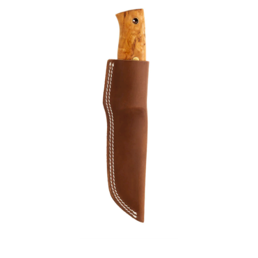Le couteau est livré dans un étui classique et profond, à double couture et passant de ceinture. Cette version est fournie avec un étui de couleur beige.