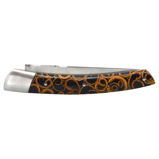 Couteau pliant LE THIERS 1 pièce lame 110mm manche cannelle noir odorante coutellerie chevalerias