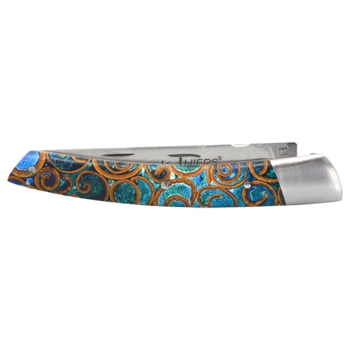 Couteau pliant LE THIERS 1 pièce lame 110mm manche cannelle turquoise odorante coutellerie chevalerias