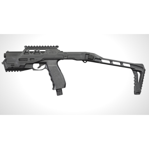 Transformez un pistolet Vesta en fusil tactique en quelques secondes grâce à cette innovation : le kit SPEAR. Il intègre un flashloader 6 coups qui permet le chargement de l'arme montée dans le kit, un brise-vitre, un double rail picatinny, un support de sangle ainsi qu'une crosse rabattable.