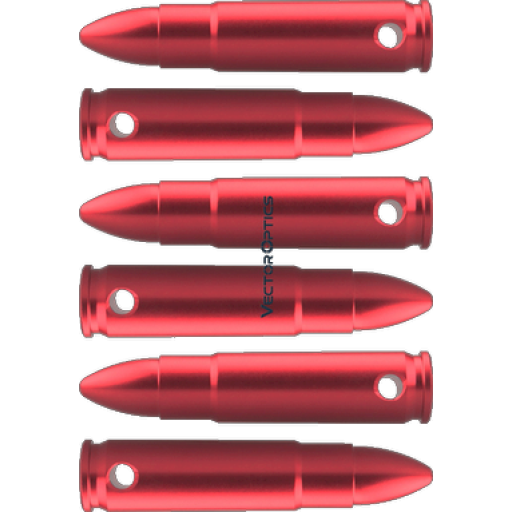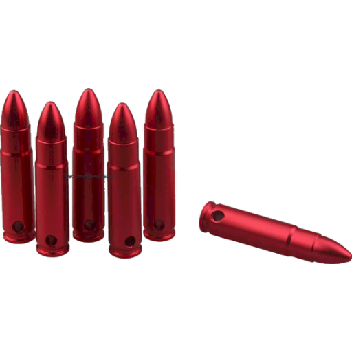 Ces cartouches factices 300 Blackout reproduisent les dimensions exactes d une munition reelle, sans contenir d amorce, de poudre ni de projectile. Fabriquees en alliage d aluminium avec une finition anodisee rouge, elles sont ideales pour l entrainement, le test de fonctionnement, la manipulation ou le stockage en toute securite. Le culot en silicone souple protege efficacement le percuteur lors des tirs a sec. Vendues par lot de 6 pieces avec une attache pratique.
