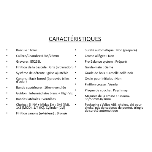 Fusil Browning B525 sporter BLK pro stock cal 12/76 canon 81cm serie limitees 2026