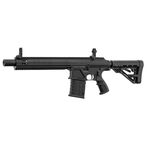 Ce fusil semi-automatique à emprunt de gaz combine l'ergonomie d'un AR-15 avec la puissance du calibre 12. Conçu pour le tir sportif et dynamique, il utilise un châssis intégralement en aluminium pour une robustesse maximale et un poids maîtrisé. Son système d'alimentation par chargeurs amovibles permet des rechargements ultra-rapides, surpassant les fusils à pompe traditionnels en cadence de tir.