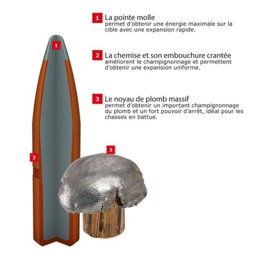 La Power-Point® est la balle de Winchester® la plus populaire et la plus largement utilisée par les chasseurs et les tireurs à la carabine depuis plus de 40 ans. La simplicité étonnante de cette balle à pointe molle en plomb et à chemise spécialement crantée permet d'obtenir un très bon pouvoir d'arrêt du gibier.