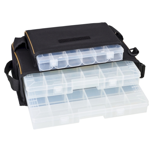 Doté d’anneaux et d’une grande pochette sur l’arrière, cette musette peut contenir un ensemble d’accessoires indispensables à une partie de pêche sereine.