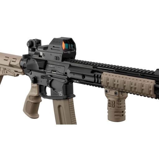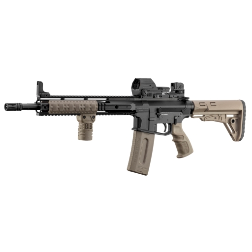 Le pack inclut également une crosse DLG Tactical TBS Sharp, une poignée pistolet DLG, des couvres rails Picatinny, une poignée verticale compacte, ainsi qu’un chargeur 30 coups HERA ARMS en coloris FDE. Ces éléments en polymère de haute qualité assurent une excellente prise en main, une résistance maximale, et un look parfaitement cohérent.