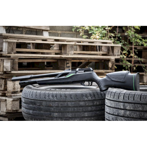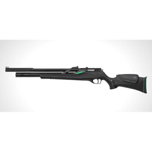 Carabine PCP a réaremement manuel culasse linéaire équipée d'une détente réglable, un chargeur rotatif, un busc ajustable et un modérateur de son pour un confort maximal lors du tir.