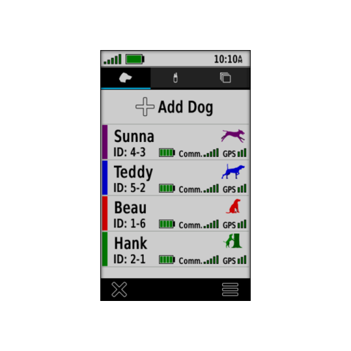 Gestion de Groupes : Stockez jusqu'à 250 chiens et organisez-les par groupes pour un déploiement rapide sur le terrain.
