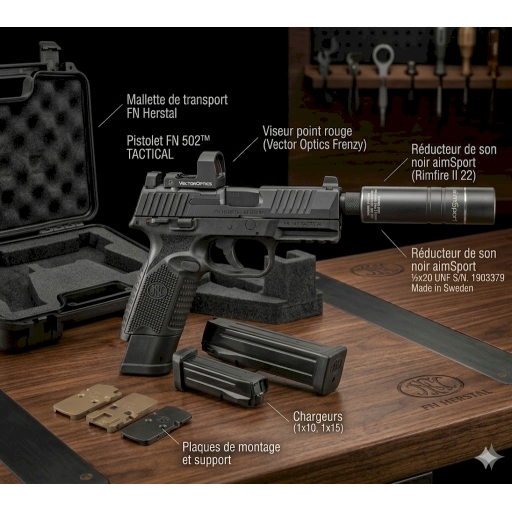 Pack Tactique FN Herstal 502 Noir : L'Excellence du .22 LR Prêt à Tirer
