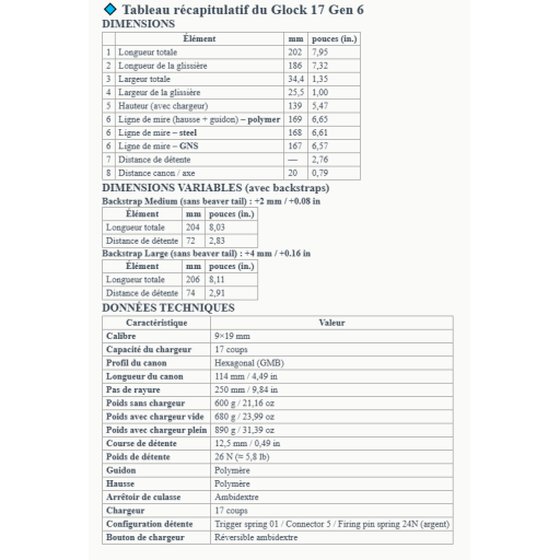 Taille de glock